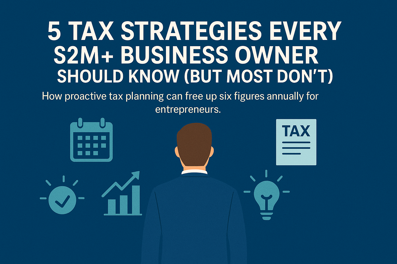 ๐ก Introduction For most business owners, taxes are the single biggest expense. Yet many owners unknowingly overpay every year because their tax strategy is reactive, not proactive. By using proven strategies, entrepreneurs can free up significant cash flow — money that can be reinvested, used for liquidity, or saved for future exit planning. Here are five tax strategies every $2M+ business owner should know. 1๏ธโฃ Optimize Entity Structure ๐ข Choosing between S-Corp, C-Corp, or LLC can save tens of thousands each year. The wrong structure = unnecessary payroll or double taxation. 2๏ธโฃ Strategic Owner Compensation ๐ Balancing salary and distributions minimizes payroll tax while keeping the IRS satisfied. Done wrong, this mistake alone can cost six figures over time. 3๏ธโฃ Advanced Retirement Plans ๐ Standard 401(k)s cap out quickly. Cash balance and defined benefit plans allow contributions of $100K–$250K+, creating huge deductions for owners. 4๏ธโฃ R&D and Other Credits ๐ก Even service companies may qualify for credits like the R&D Tax Credit. Bonus depreciation and Section 199A deductions can add up quickly. 5๏ธโฃ Exit Planning Ahead of Time ๐ช If you’re planning to sell in 3–5 years, set up strategies now: QSBS exclusion, charitable trusts, and installment sales can save millions at exit. โ